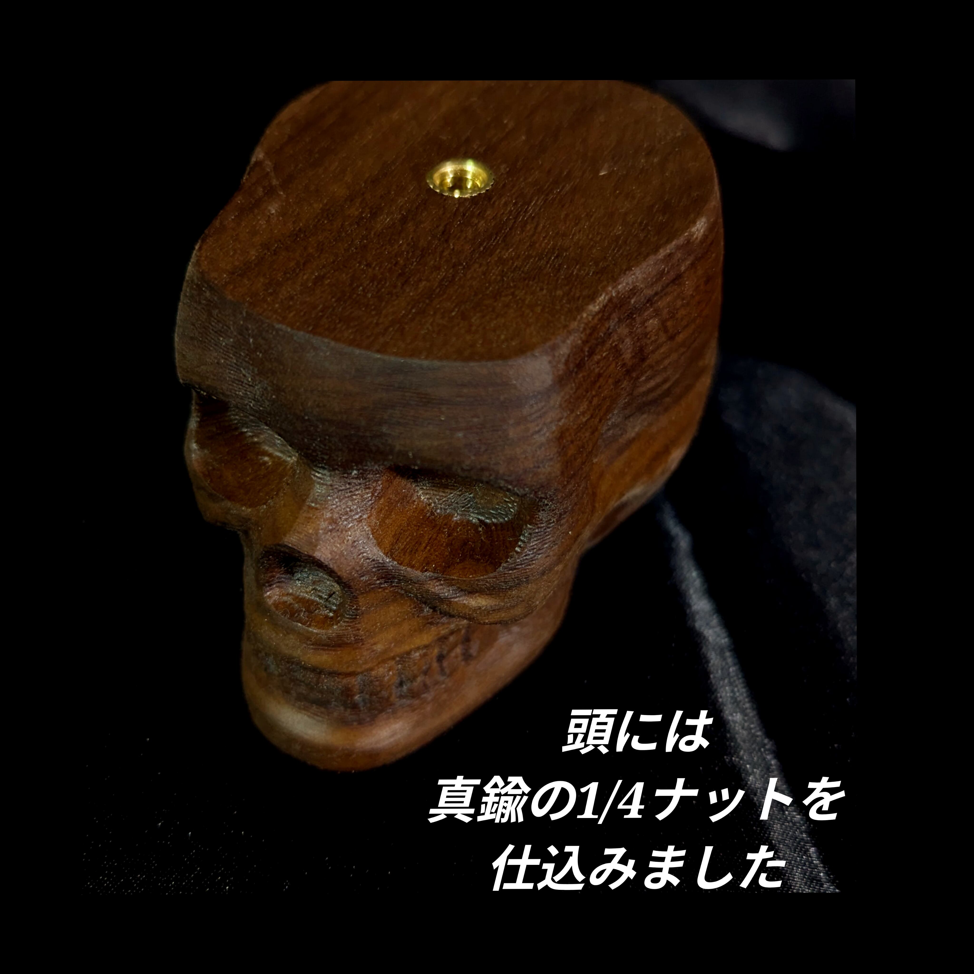 初版特別ポール付き ウォールナット Skull Stand "Guardian Skull" 守護スカル