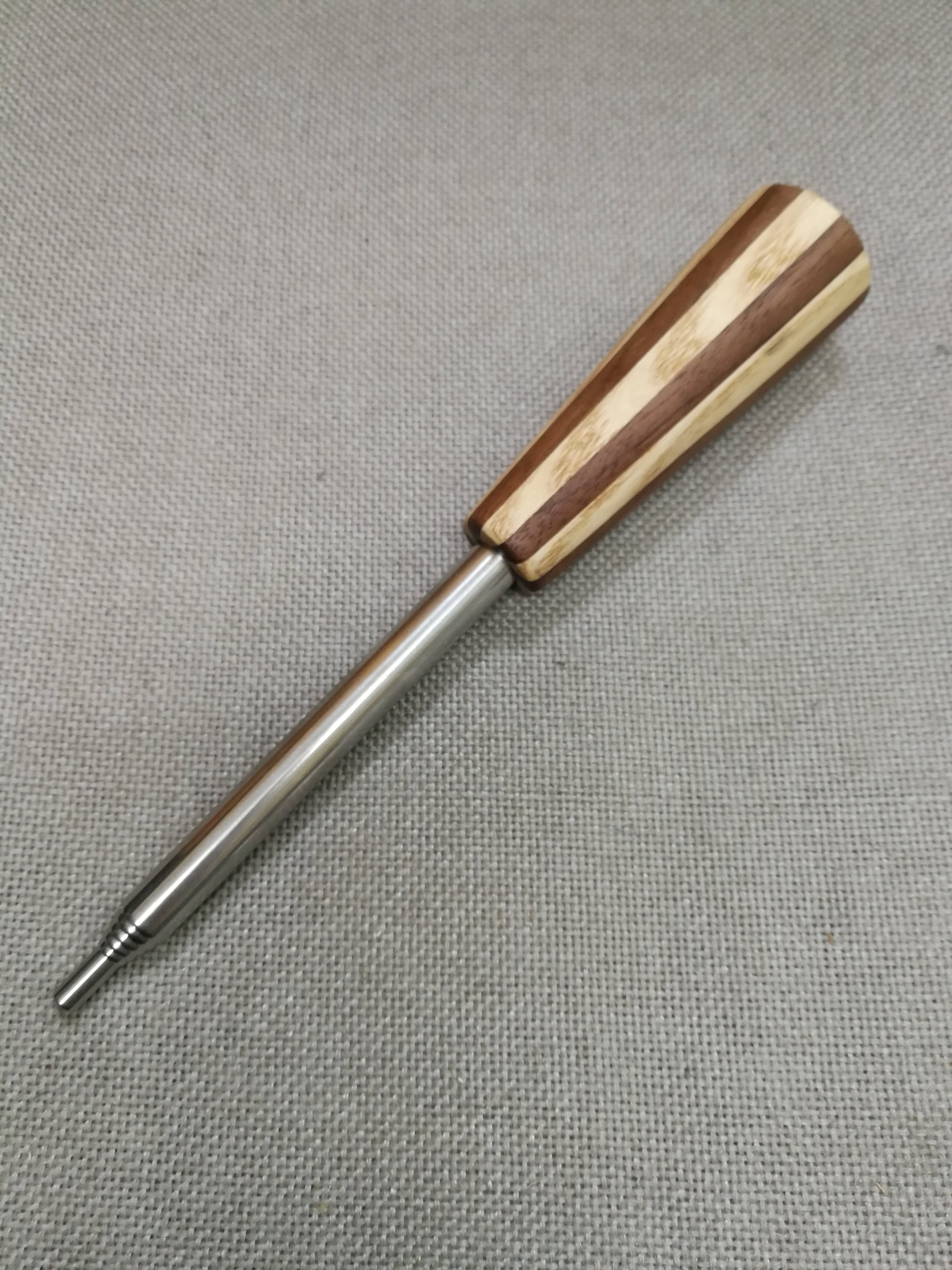 中心に1センチの穴があいており、吹く部分はメガホン状にして吹きやすく加工してあります。